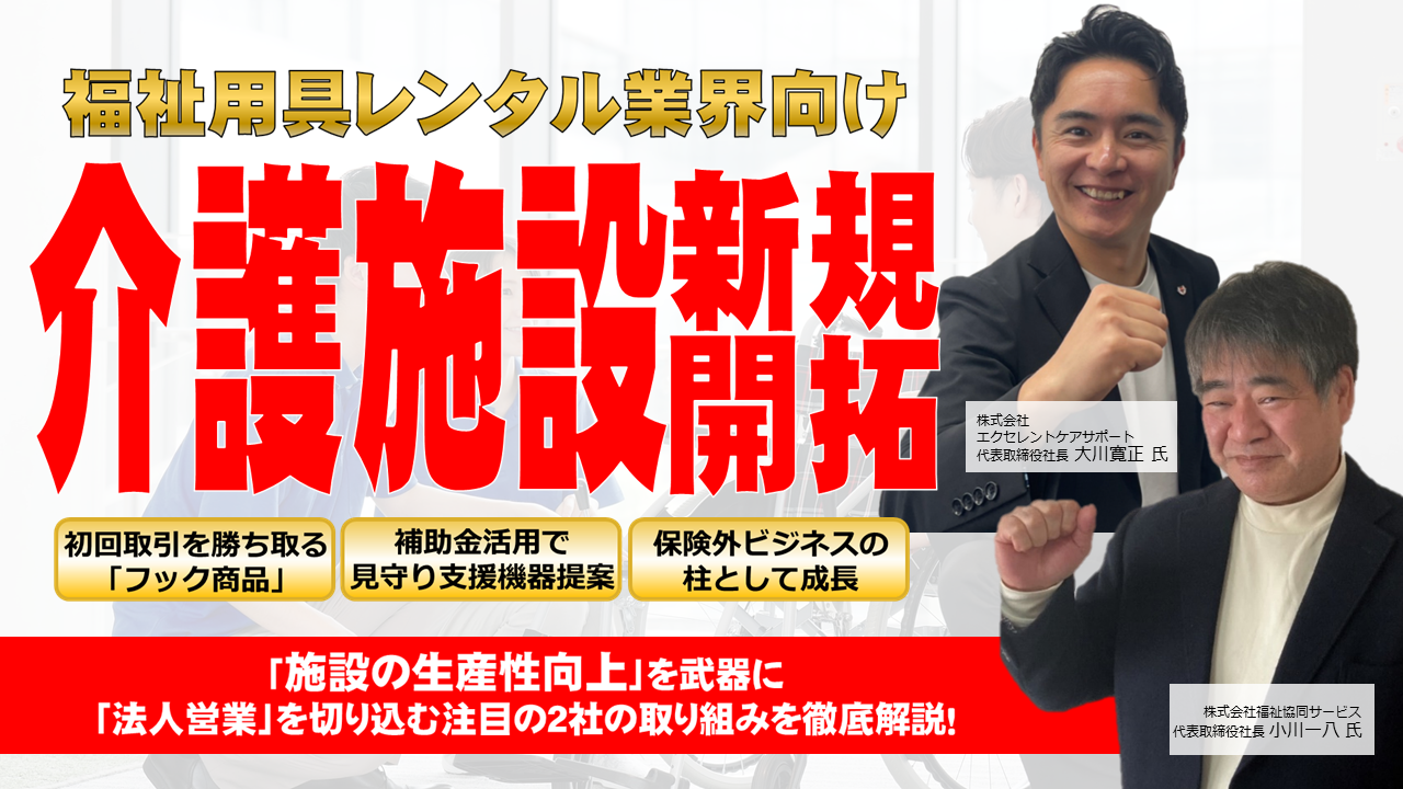 前回、真の施設の生産性・収益性向上パートナーとしての地位を確立し、病院・施設向け法人営業で飛躍的成長を続ける株式会社エクセレントケアサポート・大川社長にその秘訣をお話いただきました。